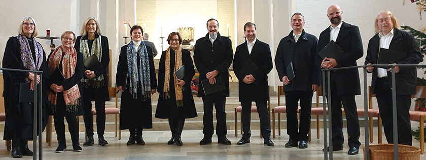 Unter der Leitung von Christoph Stoll singen in unserem Ensemble 13 Sängerinnen und Sänger der Stimmlagen Sopran, Mezzosopran, Alt Tenor, Bariton und Bass.